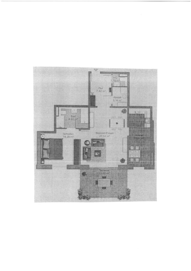 Die in den Grundrissen eingezeichnete Möblierung ist im Lieferumfang nicht enthalten und nicht Vertragsbestandteil. Sie stellt lediglich einen Einrichtungsvorschlag dar. Garantien werden nicht abgegeben. Die Grundrisse sind keine Originalgrundrisse und daher nur beispielhaft zu verstehen.